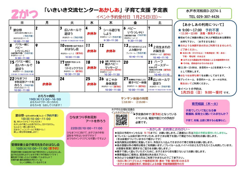 | 問合せ | いきいき交流センターあかしあ 電話:029-307-4426 |