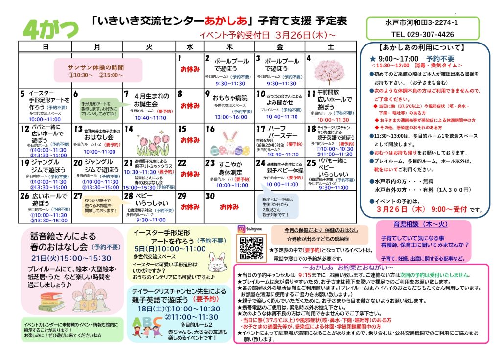 4月分~3月26日(木)9時から予約受付開始✅~
